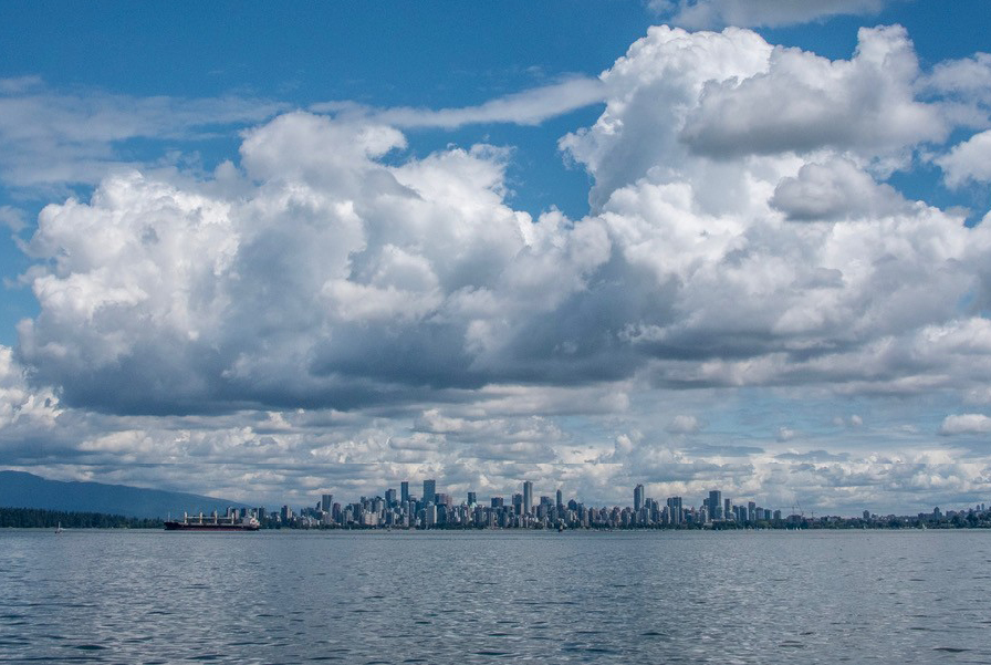 I agree with removing the top cloud. The clouds are impressive but I think that they need something to draw more interest to them. I might even consider cropping the panorama to increase the size of the main buildings, and maybe waiting a few minutes until it was more centered over the cloud. It is impressive to me either way. |