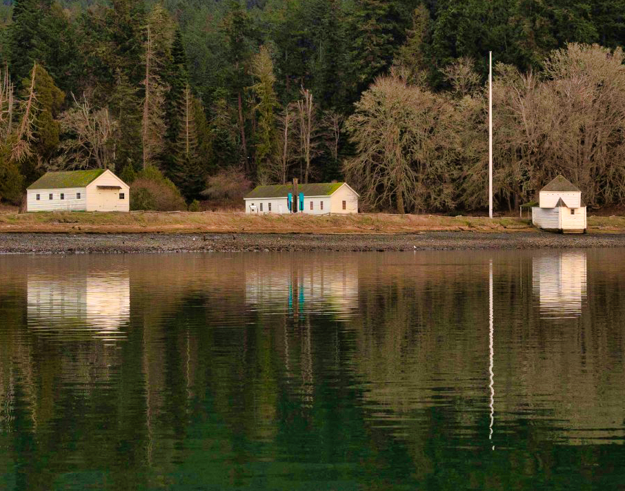I do like the reflections in the still water. What would you think about cropping in closer to the flag pole to make a closer grouping of the buildings? You could hang a Union Jack on the pole and call it good. :) |