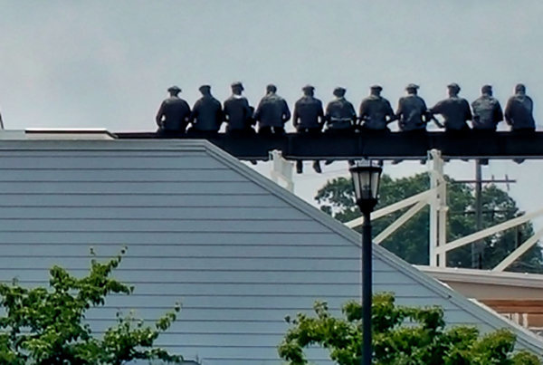 The men are so unusual that at first I chuckled at the image.I wish they were a larger part of the frame. Maybe something like this? That way the colors of the mural on the left don't fight with the men. |