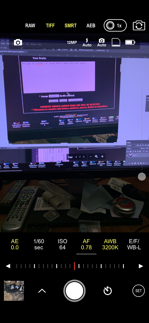 I was using the camera on an iPhone 10. I believe I shot the image through ProCam so it was a Tiff file. |