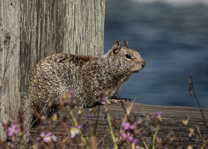 I like this a lot. The squirrel looks close enough to touch. I agree that there may be too much wood. Here's a cropped version. I kind of like seeing the post top though. |