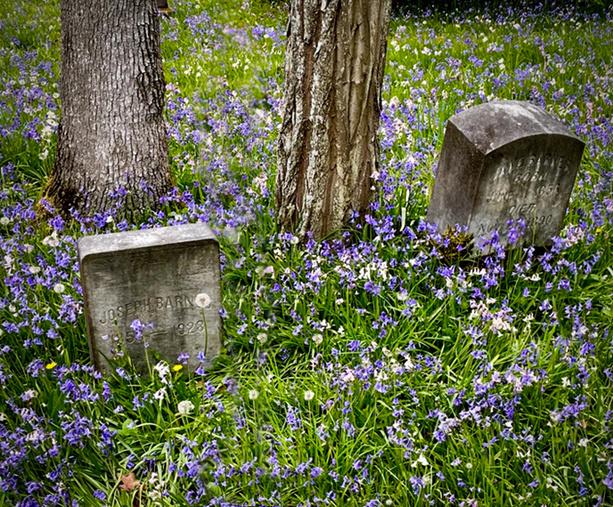 Interesting mix of new flowers and old stones. Kind of bifurcated image though. Since I'm on the desktop now, here's how it might look with PS. I think we could also get it done with our phone apps. |