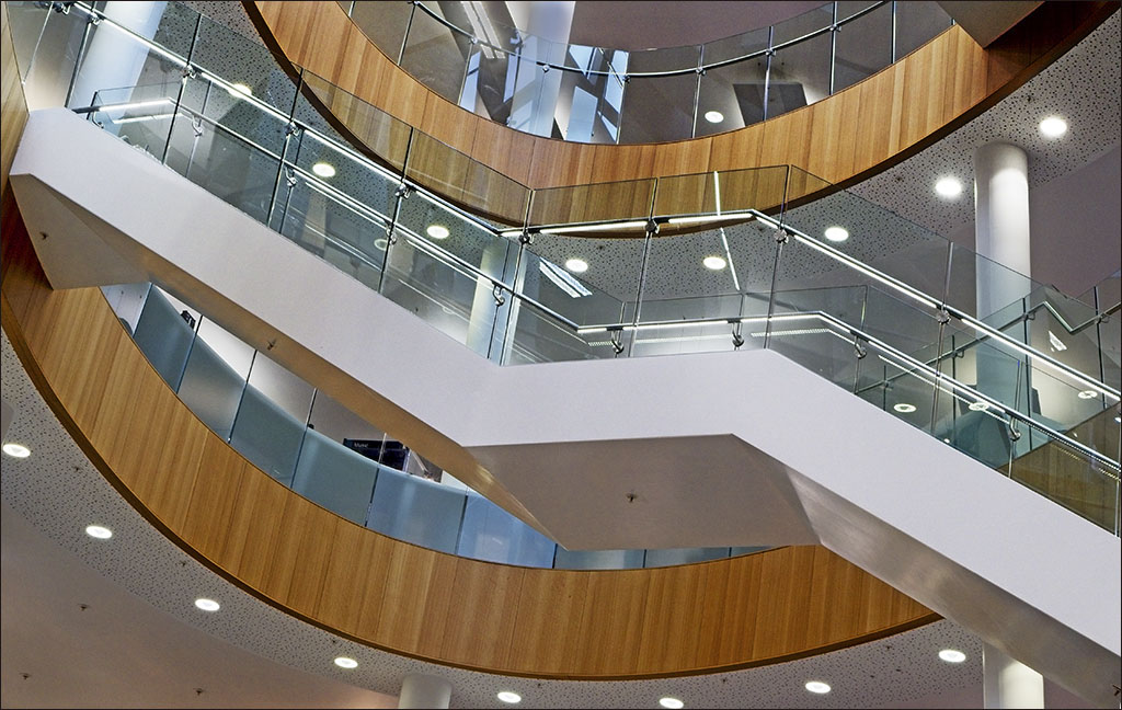 I always enjoy your shots of stairs and balconies and so on, and I think that this is one that most people wouldn't notice. I like the contrasting lines and curves. I would like to see the shapes above the top curve somewhat darker, so that they don't attract my eye so much. |