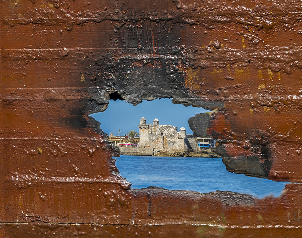 Good concept Isaac, and your 2 images brought sharpness to the entire image. The Castle wall was canted to the right so I put your rendering into PS, entered the letters A and T with the ctrl button depressed and straitened the Castle by dragging my mouse from the lower right corner until the vertical line was established. I found the buildings on the right a distraction. You might consider using Content Aware to fill that area in with a portion of the foreground. |