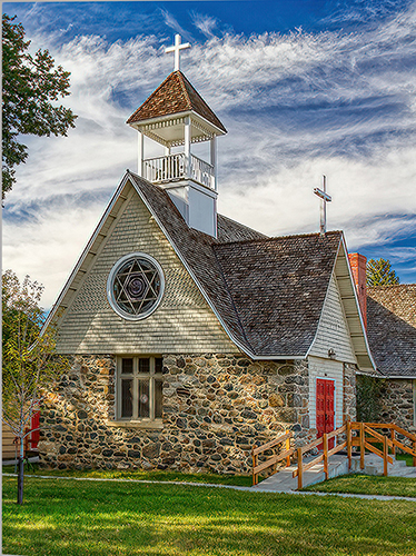 This is a pleasing image, good color, sharp boasting a wispy sky and well placed on your canvass. I noticed that your horizontal and vertical were a little off, notice the right window. In PS-clicked on ctrl A T and dragged the right side down then moved the top right arrow to the right in order to straiten the vertical line of the right window. I didn't re-do the storke. |