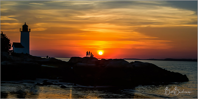 What a superb sunset! You have to work quickly in these circumstances to catch all the possible compositions before the light goes. Well done in getting a good composition here, and also getting the exposure right so that the sun is not totally blown out. I agree that the people on the rocks really make the picture, so much so that you could crop out the lighthouse and some of the foreground to put them in a very strong position as in my crop. I also rotated the image a little to make the horizon look more level. |