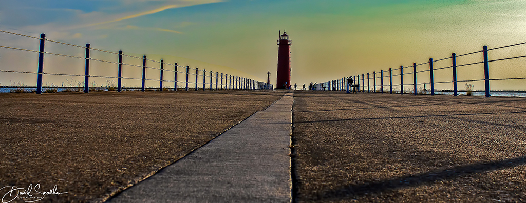 It's a great shot, David. I do like the low shooting position which has emphasised the perspective lines (path, fencing) leading to the lighthouse. As for the people in silhouette by the lighthouse, I think they are just right and add just enough detail to fill the gap between the base of the lighthouse and the right hand fence. The low light is lovely and the fence shadows add interest. The object that breaks the nice line of the right hand fence is a bit intrusive. It would be a difficult task to try to clone that out completely, but you could try cloning out the bit that sticks above the fence line. The sky has come up very well (I am a fan of Image>Adjust>Shadows/Highlights too), but it does occupy over half the image area. I would consider taking out some of the sky to rebalance the composition to put the emphasis on the leading lines of path and fence.
