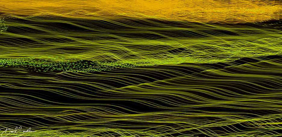 David, I think it is great to do adventurous work. If you don't try things out, you will never find anything new. When I first saw this image I saw waves on the sea (Iknow the colour is wrong, but that's what it said to me). I think your use of camera movement to create an abstract of Christmas lights is great and I think you should play a bit more with this image. I cropped a little off the top and off the right and then used a Hue/Saturation layer to alter the colours. I now see a foreground of rolling freshly planted fields with new green growth just appearing, and a background of sand dunes. I'm sure it has other possibilities too. |
