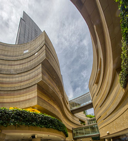 Joe I think this is a super image. I really like it as it is. The interacting curves of the two buildings lead the eye beautifully through the image. Personnally, I would not even try to straighten it up, as I like it as it is. However, I did try the Perspective control in Photoshop (Edit>Transform>Perspective) and pulled the top corner handles out and the bottom corner handles in so that the centre handles stayed on the original edges of the image. Then I cropped to eliminate the white space. However, in my view this loses too much of the original. I think the original image works because it is quirky. If you try to make it more 'correct' it loses some of its interest. |