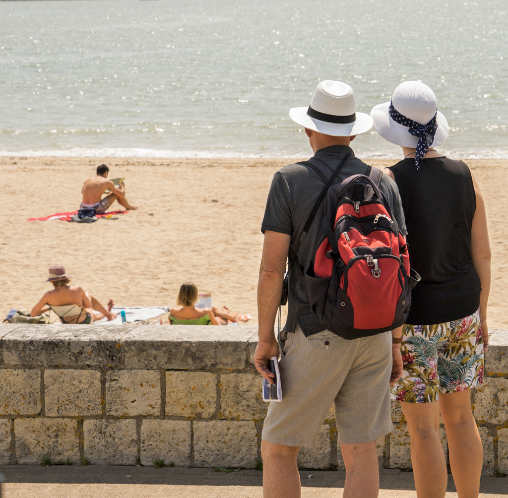 The contrast is very high between the dark tops of the foreground figures and the brightly lit sea in the background. I tried a trick that I have used many times - I took it into Photoshop and applied the Shadows/Highlights adjustment at the default setting (Shads 35/Hlts 0), then I used a Curves layer to darken it down. This reduces the contrast range and also makes the colours richer. |