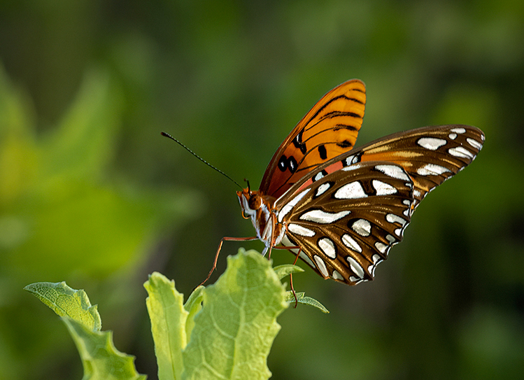 Another excellent nature shot Erik. The butterfly is very sharp and clearly defined. The background is totally blurred and non-distracting, but I feel that the green leaves are stil rather dominant. I would be happy just to crop off the bottom to just above the lower right leaf. |