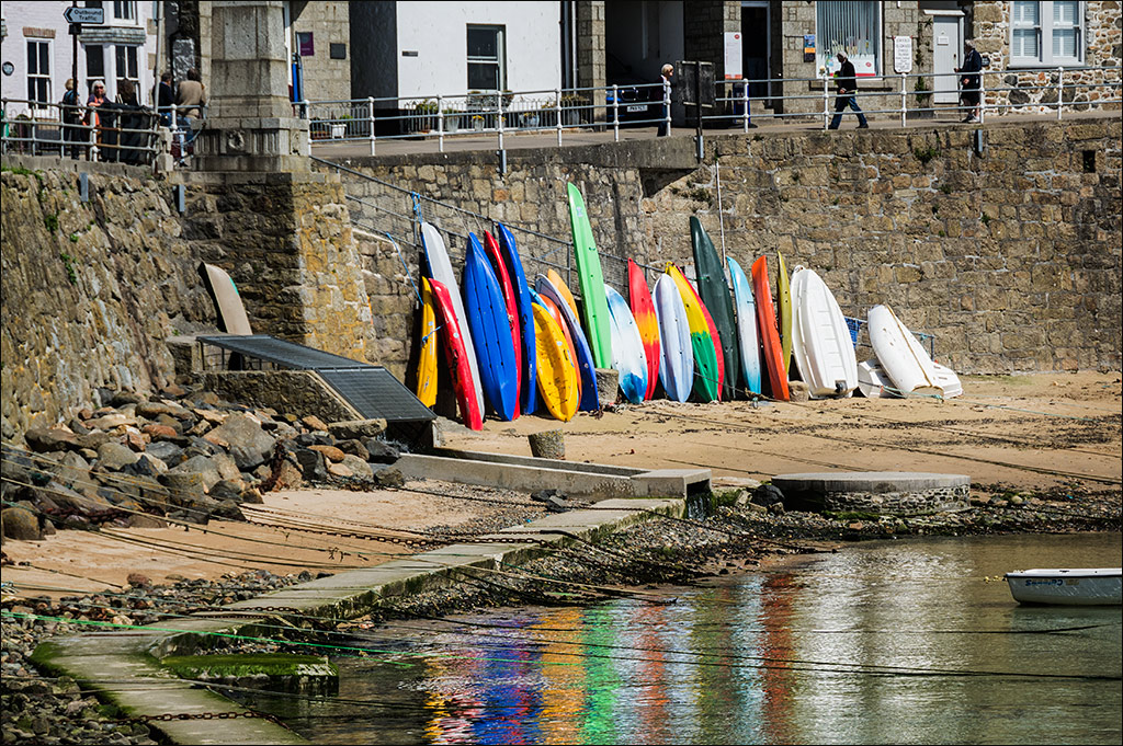 Hi Vella. I nearly laughed out loud when I saw this because I recognised it straight away. It is in the lovely village of Mousehole on the south coast of Cornwall. Paula and I were there in May 2017 and I took several shots almost the same as this scene. Your image conveys exactly the feeling of a typical seaside holiday village in southern England. I think Joe has a good point, that maybe you could crop a bit off the left hand side. The sailing boat in the bottom right acts as a strong visual point of interest, with the colourful canoes and boats in the background. The name is pronounced "Mouzel" and not as you might think, "Mouse-Hole." I have attached one of my images of the scene for interest. |