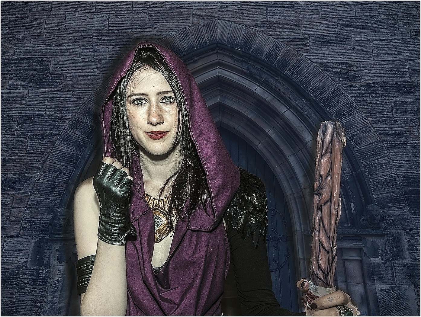 Ian, I would never have guessed that this was a composite. The lady looks kike she is just standing there in front of the church door. I do think that the staff is a bit bright and distracts fir the portrait. I tried a little darkening of the staff and the hand to make it less strong. |
