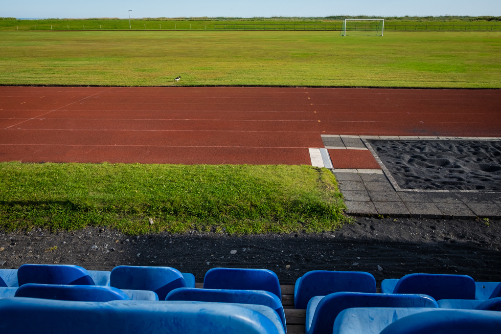 The pole and the partial soccer goal are a distraction for me. I would get rid of them to simplify the image. See my rough example. |