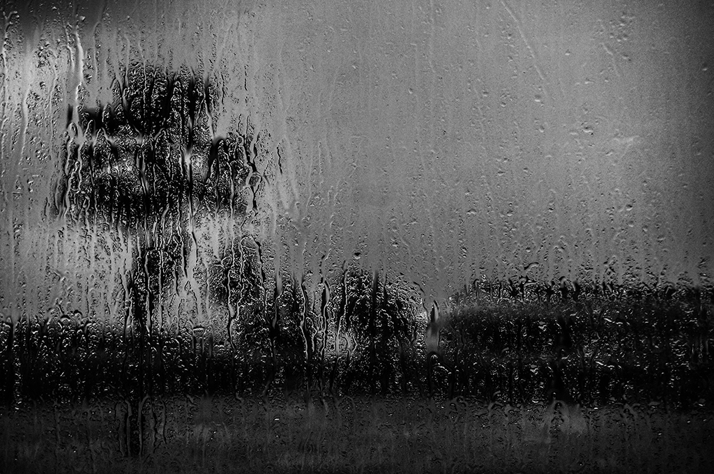 Tony, Well done abstract image of the rain on a window. The tree adds a lot to the image. Converting to B&W was a really good idea (and well done). The white on the right side is a distraction to me. I used the clone tool to remove it. |