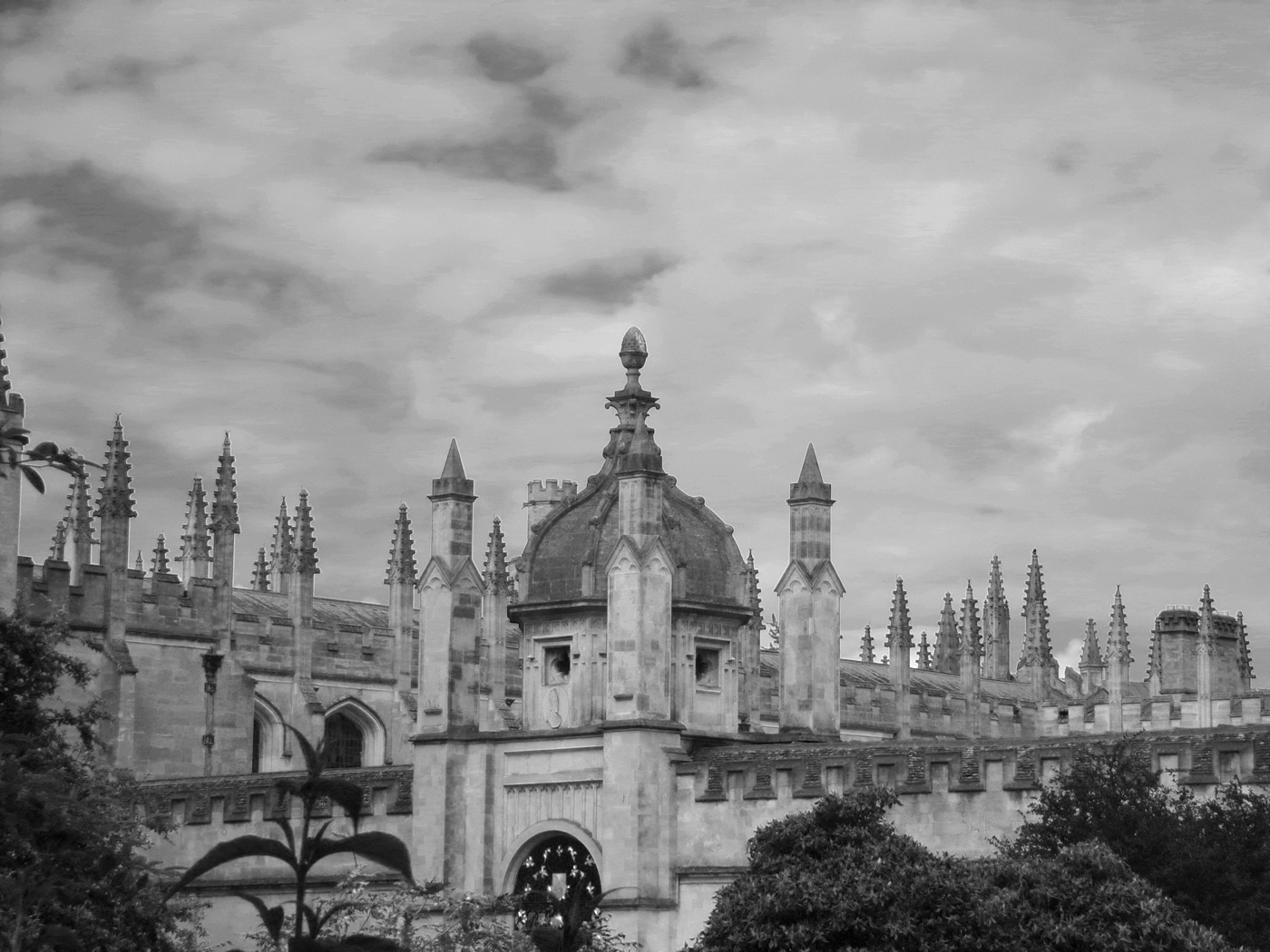 The image seems a bit dark to me. I like what Diana did with it. I have found that if you make adjustments to the color image before you convert to monochrome that you can get better results. I used hue and saturation on the color image to select the blues in the sky and saturate and darken them more. Then when I converted to monochrome in PS I used the red filter option and adjusted the yellow slider to make the building lighter. |