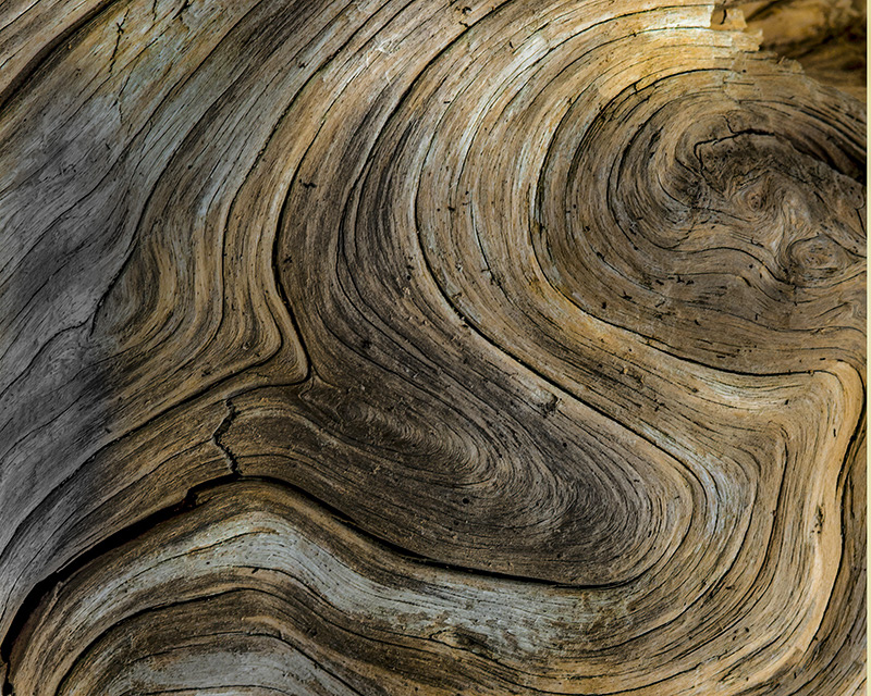 What a really great find! I like the texture and all of the curves (including an "S" curve) and of course the knot area. I think that your crop is also the correct one. It is nice and sharp and the lighting is very good to bring out the texture. It is also a great image to play with. I did make a rotation of the image, to put the knot in the upper right corner. I also adjusted the image to make it a bit brighter with a curves adjustment. |
