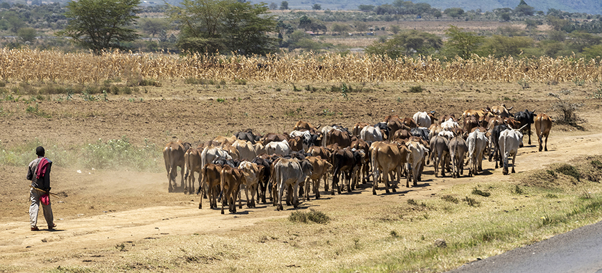It is a nice story telling image. The red on the man helps the image. I reversed the image, and removed the building at the top. I think that by reversing the image you now have the road as a lead in, and the cattle are moving toward the distance. Of course you could leave the building in the image, and it would not catch the eye as much as it would not be in the upper right power point. What do you think? |