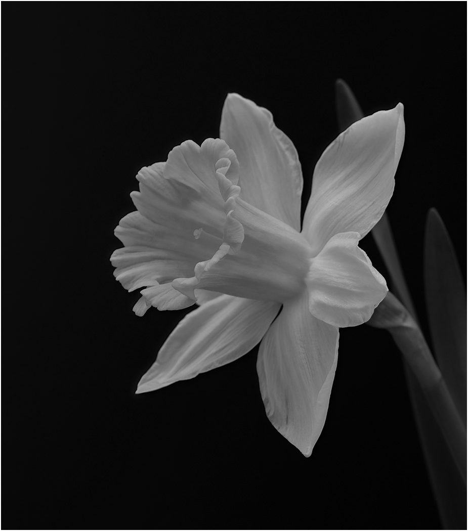A really great very sharp image. The black background is good and leaving the stem keeps the flower from "floating". Great lighting and colors. |