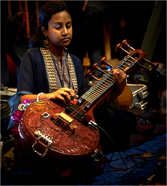 I agree with Paul that the bright items around the woman are a distraction. I know that my mind also gets focused in on the subject that I am taking and do not see distracting items around them until later. Looking at the image, you may have been able to get rid of some of them by moving to the right. Overall, I really like the image and the woman so involved in the music. I think her right hand may be in focus, but is blurred because of movement. Your focus point is off, because it would be a better image if the near part of the instrument was in focus instead of the back. I did use photoshop to clean up some of the items. I would say that your test of the camera's low light capabilities show that it is very good. |