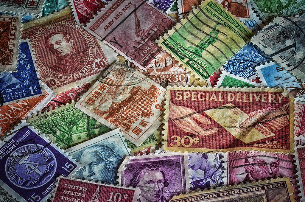 The image is very sharp from edge to edge. You have a nice selection of US and foreign stamps that adds to the interest. The placement, the size and the color help make the special delivery stamp the center of interest. The Army and Navy stamp does draw my eye because of its bright color. I toned it down in Photoshop. |