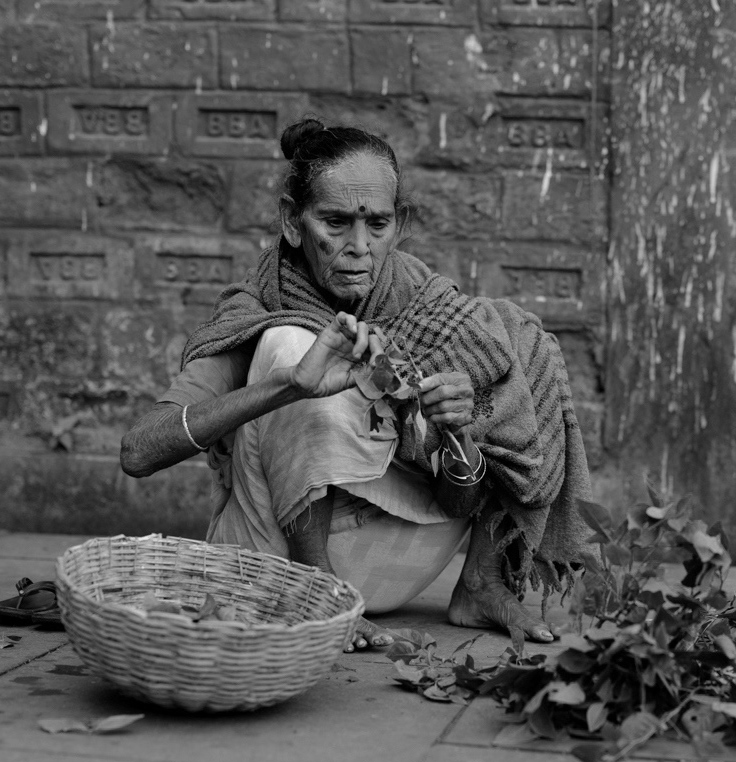 You found a great subject to photograph, and caught her very intense in her work. The expression is great. I think that the crop is very good. But, I think that the image is too dark overall, and the bricks being so dark makes her blend into the wall too much. I did make the bricks lighter and also dodged her face some. |