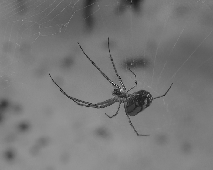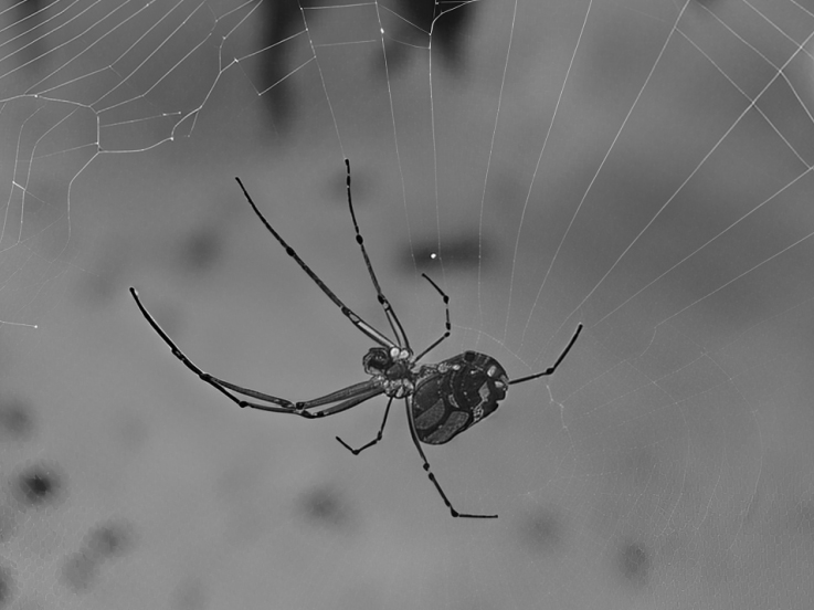 The spider looks unsharp, probably because you had to crop in too much, not that the focus was off. I used Topaz Photo AI's new Super Focus on your color image and converted to mono. It still looks a bit pixelated because of the small jpeg image. I think this software is amazing for images like this. |