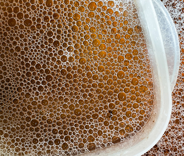 I am glad to know that I am not the only person not to have a dishwasher. I agree that the various sizes of the bubbles and the different shades of brown are interesting. The plastic dish really adds to the image. I think that it would be a better image if you rotated it so the the dish becomes sort of a stopping point. I did that, and also cropped off a bit of the now right side. |