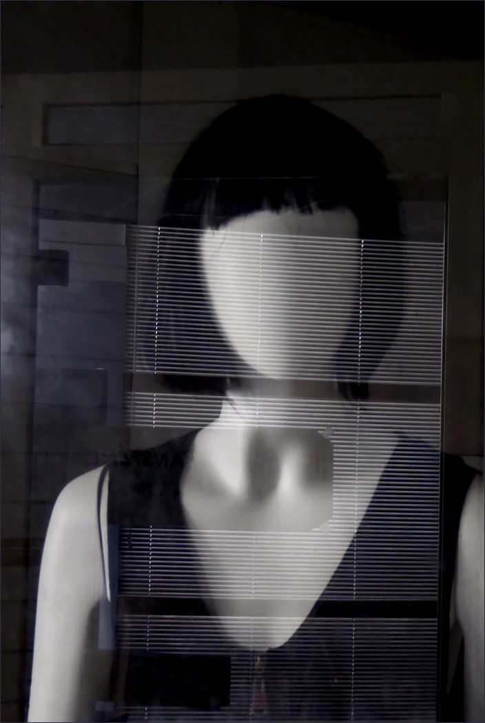 You found and captured a very creative image. The reflections really make this image. It is good that they are not quite straight. It is also fortunate that the reflections have some open areas. Selecting a faceless mannequin was a great choice. The image is very thought provoking as you said. It is not monochrome as Butch said, as I can see some blue tones in it. I don't know if conversion to mono would help or hurt the image. I did crop off the window area on the left as it was drawing my eye from the mannequin, but that may distract from the story. I think that this could be hung on a wall as modern art. |