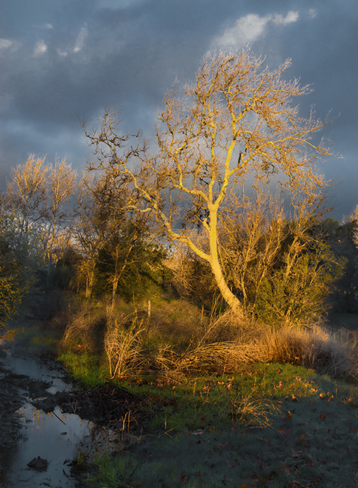I like the golden sun light and morning mood. It's very impressed golden sun light spot. I would try darken around golden bright area, so we can get a stronger impression of the golden morning light. Also you might crop off a little bi on down side. |
