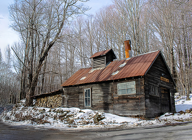 Very nice winter photo. I agree Barbara and Rich comments, The building of sugar house with surrounded soil is too close to the edges. I feel some oppression. So I expand the left and down side space. Also crop off a little on top. |