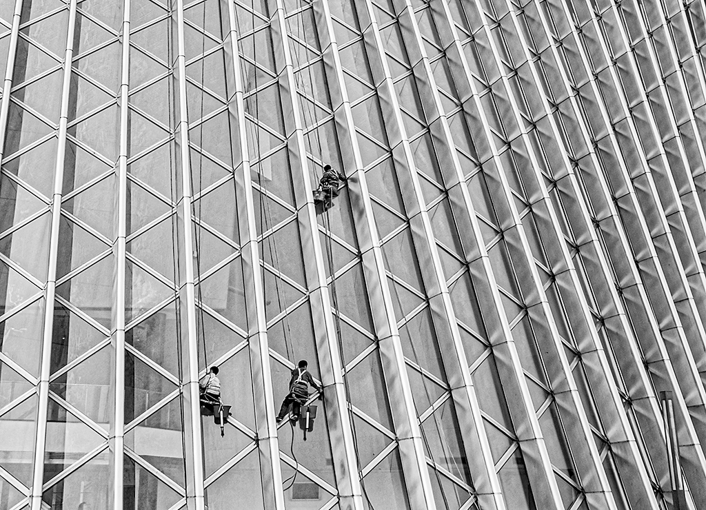 Your B/W photo is telling the story of winery. I would shoot it in more symmetry to create a pattern image.