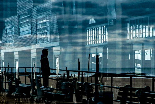 Interesting reflection shot. In the first glance I did not pay attention on the man looking out at the ocean.