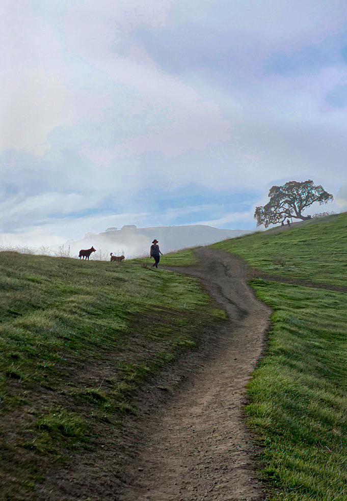 Nice image! The major subject is the person and dogs. Look in the whole image the major subject is not quite outstanding. the big tree attracted my eyes move to the big tree on right.