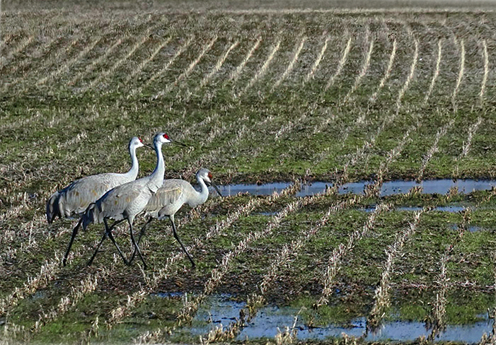 I would made little adjustment of cooler tone and the grasses will greener. Also Raise the contrast and sharper, the cranes will stand out. Also, I cropped a little around the frame to make the cranes bigger. |
