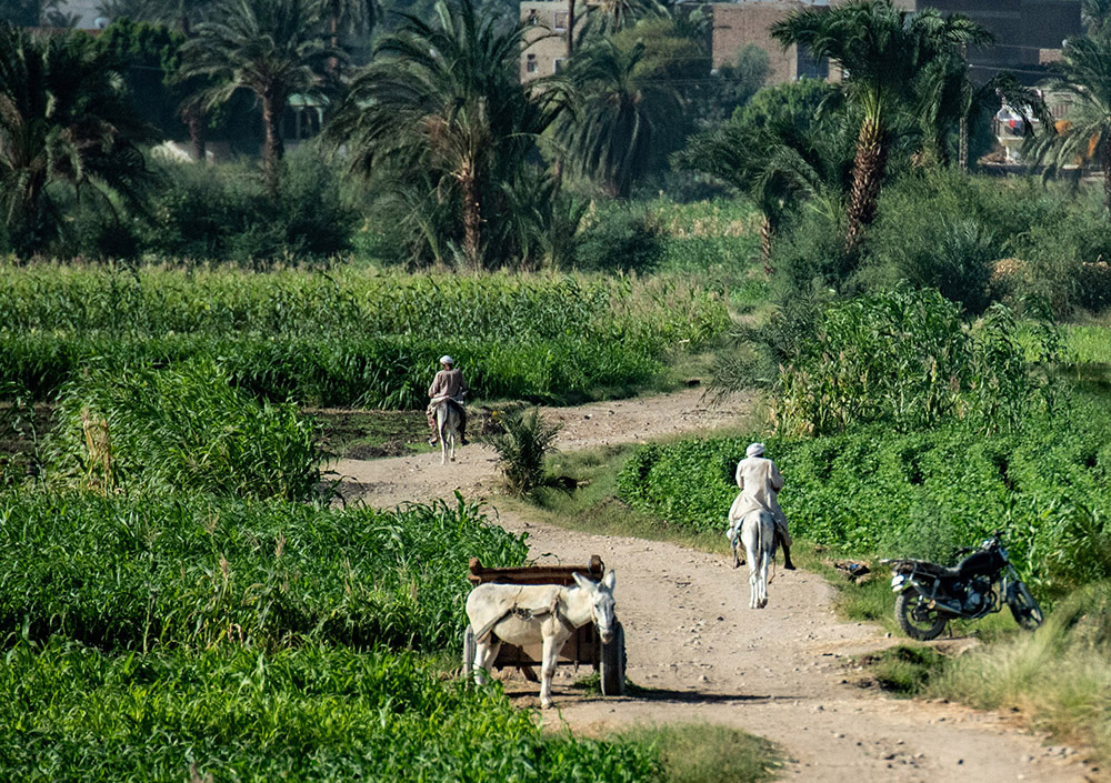 Donna, thanks for your suggestions! I did not add anything to this image. But you are right - there is no shadow on the middle donkey and rider. Perhaps there was a slight dip in the road on the right side and the shadow was not visible at the angle I took the shot. Darkening the pathway definitely helps. However, I am conflicted about cropping the image. I agree that the lower half of the image can hold its own as a separate picture. However, I also feel this crop removes too much of the background countryside and makes one wonder where the riders are going. Do you think a lesser crop would be a workable compromise?: |