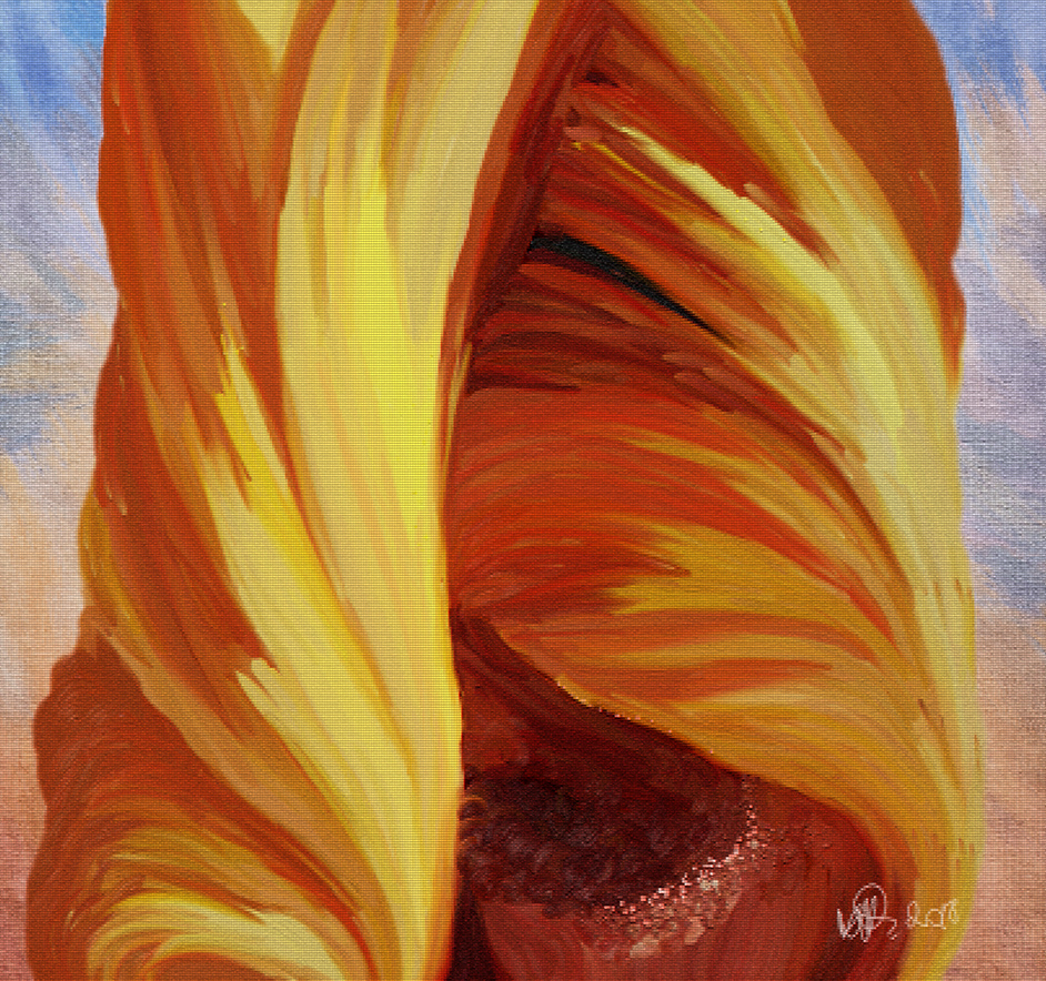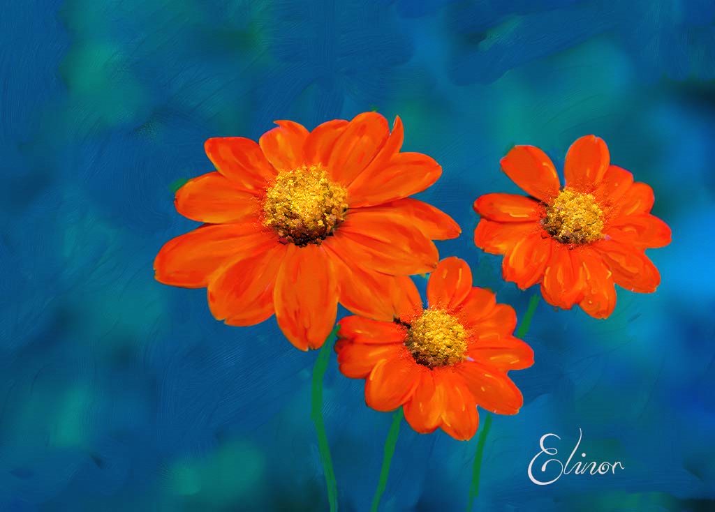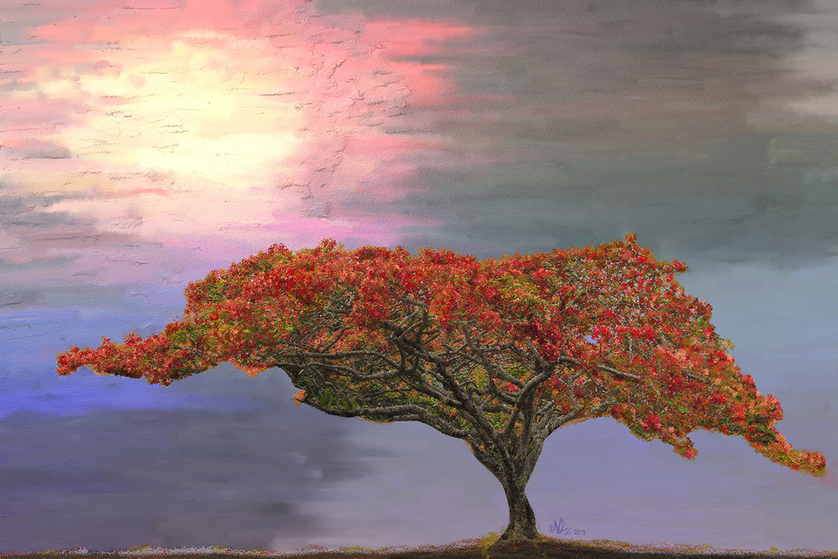 I do have one are of concern and that is the center of the flowers. On the photo they pop and stand out of the image. I know it is hard to do that when we use painting software that doesn't automatically add texture.