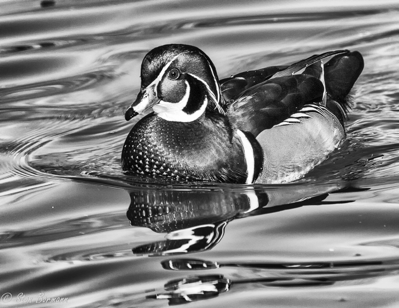 Here is the wood duck. It has received acceptances and awards. I never exhibited the sandhill in monochrome version. |