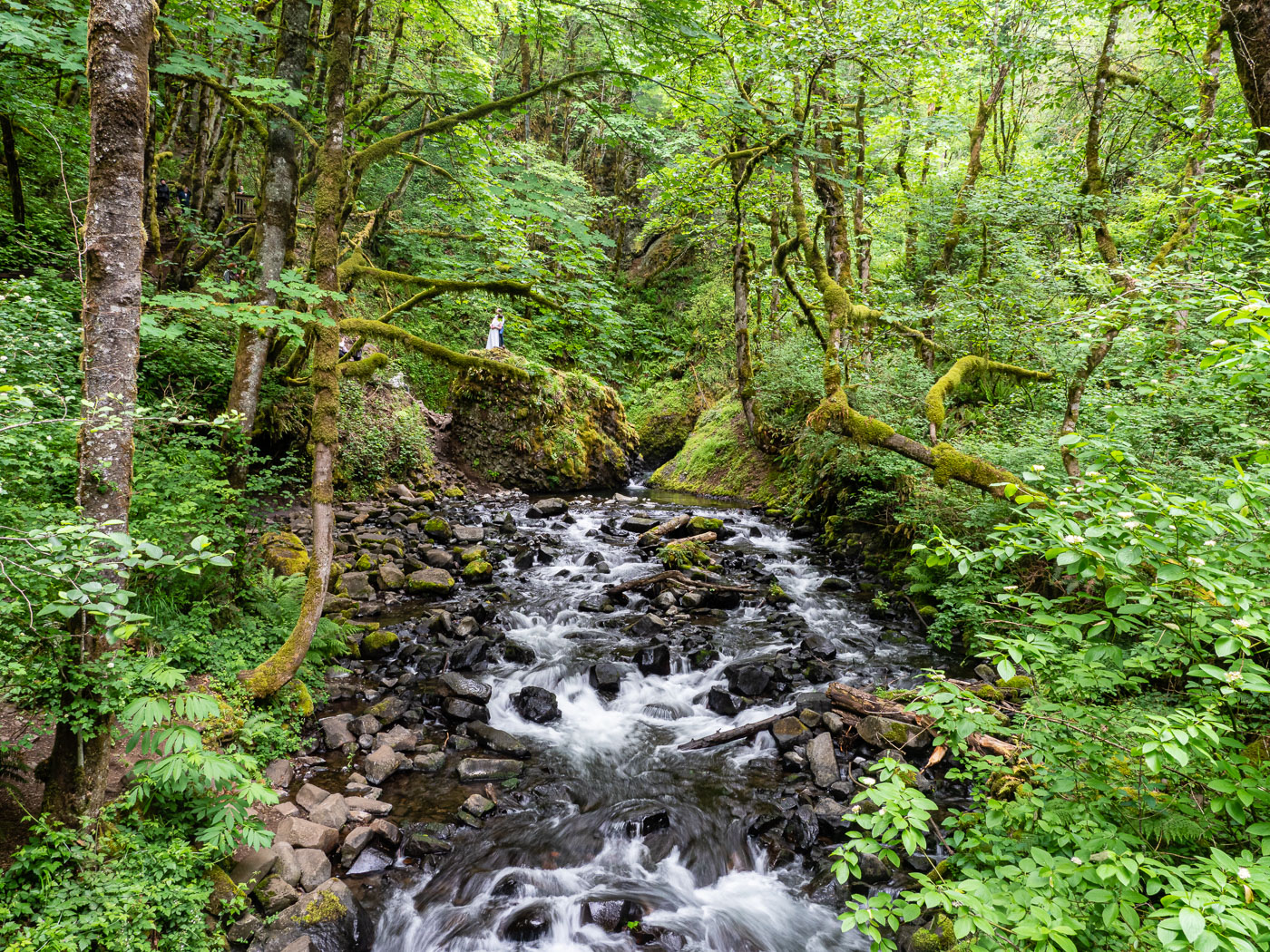 The artist decides, but I think I would bring up some of the rocks near where the water is landing, and perhaps bring down the white where the water is hitting some of the rocks. The waterfall itelf seems perfect. I would try a "stroke" of white or near white. When I say stroke I like them narrow, just a few pixels. |