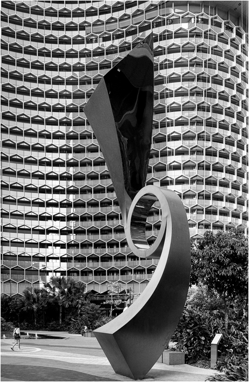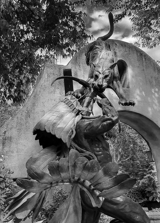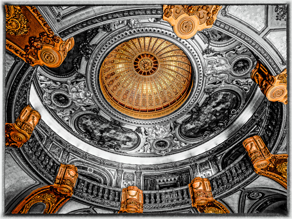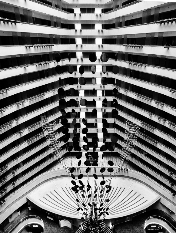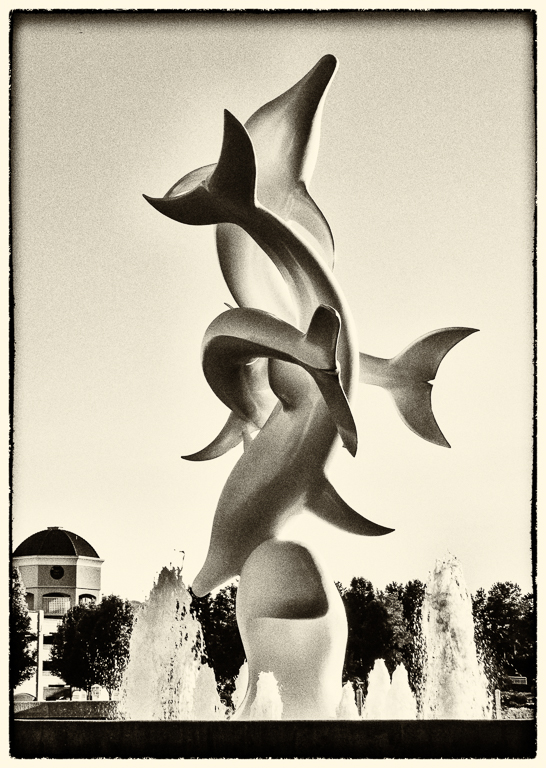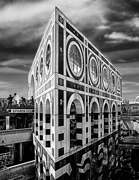 I sometimes hear people talk about how busy it is, but with this image that is the intent and the strength. the reflection adds an additional layer of busy and makes it even better. My guess is this would not be anywhere near as effctive in color. Just color distractions. |