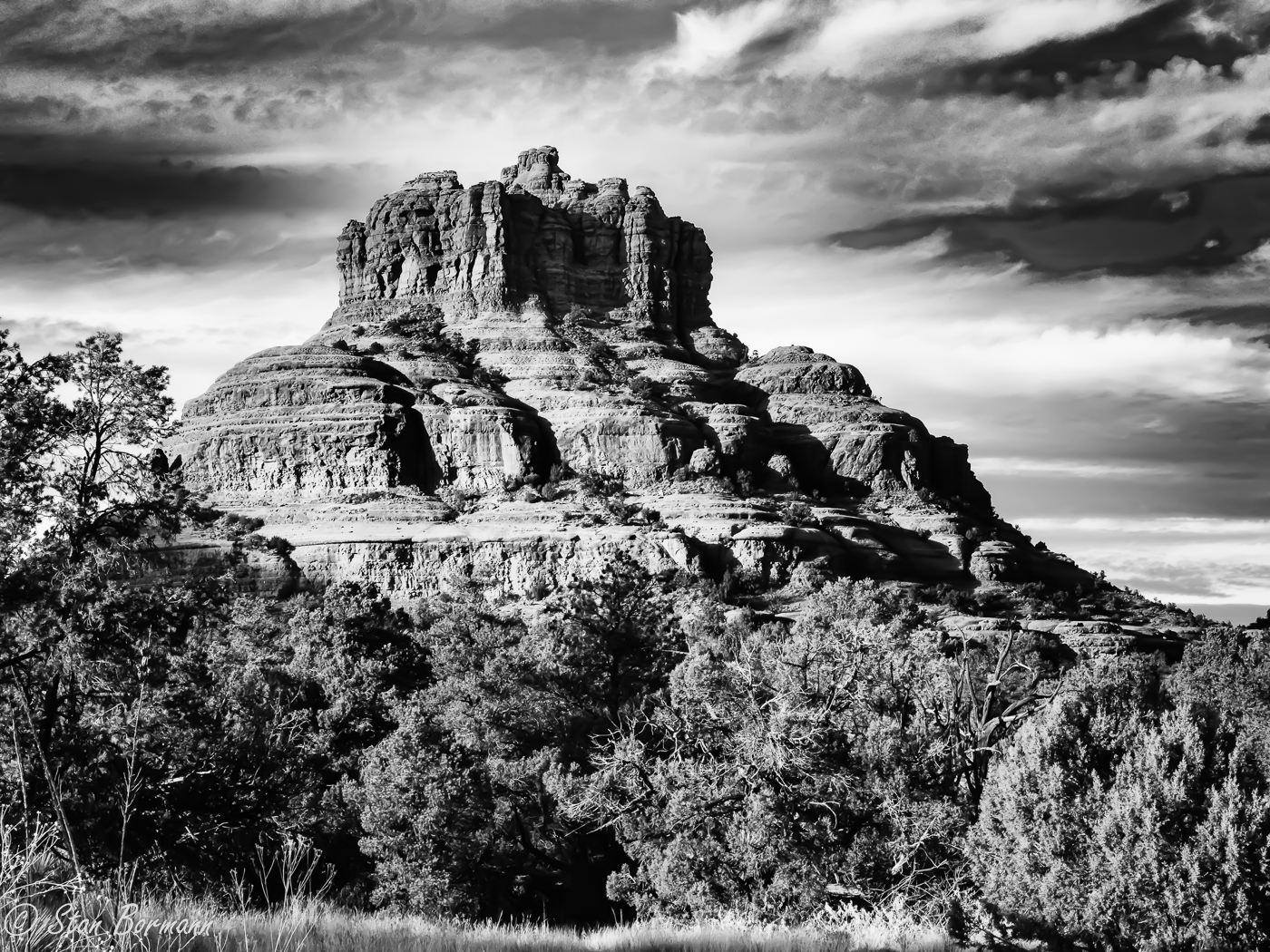 You may notice I cropped the top significantly from the color. That was partly because the imperfections stand out so much in the mono version and were more pronounced at the top. I tried to do something to reduce them but failed. I liked the image and decided to use it with the imperfections. |