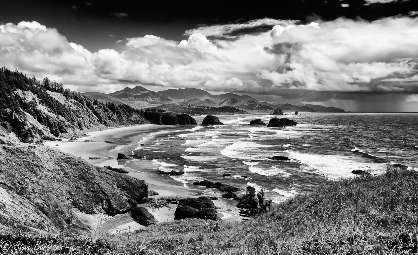 A common shot, but concentrated on the breaking waves instead of more of the village which worked well with this sea. That can be a quite little harbor, so this is cerainly unique. The sky is pretty plain, but that has the advantage of not competing with what you want to show. You could play with the tone of the sky to darken and/or bring out the clouds more if you are uing a mono conversion that allows you to adjust the tone of the color blue, but well done. |