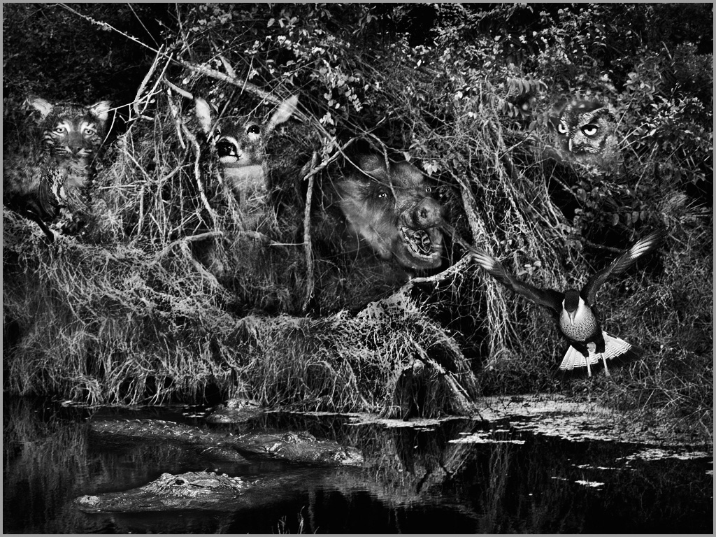 This is a lovely shot in a lovely location. I live about 2 miles from there. It took me a few minutes to realize that the chicks are framed by the mother's legs, and that the legs make a natural frame for the chicks. Based on that, I would crop a short distance outside of the legs, thus making it portrait orientation. Consider selecting the eyes, then brightening them a bit. |