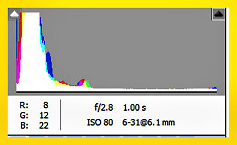 Many thanks for your keen observations. Yes, the camera was not level, and I will correct the distortion. The exposure times were 1.0, 0.8, and 0.3 seconds. That's about the three fold range expected. I rechecked the metadata, and ISO 80 is correct. Note an example from one of the exposures copied from camera raw.