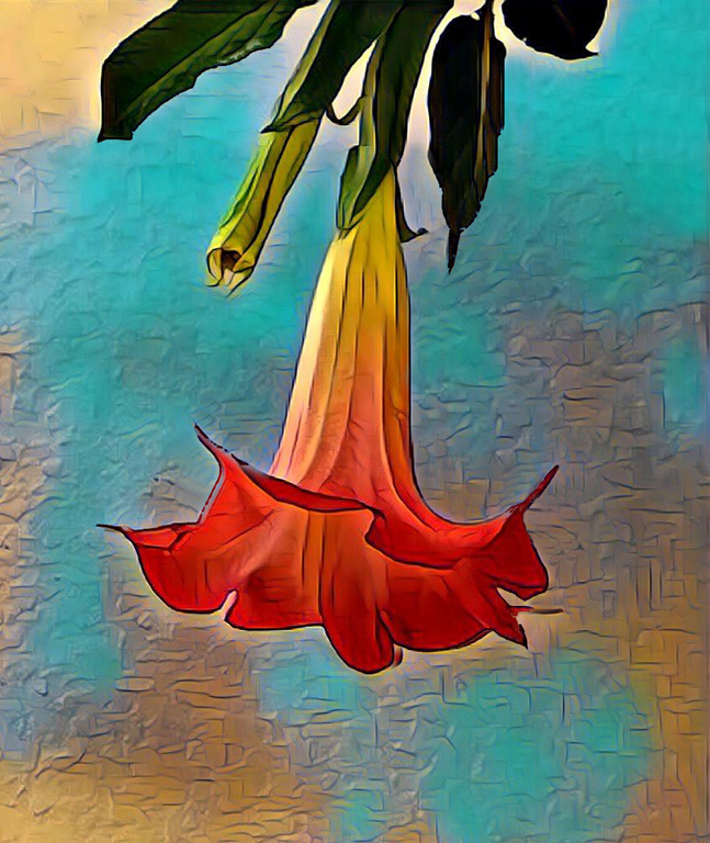 I opened my Brugmansia photo in Aristo on my iPad and applied the Summer filter.