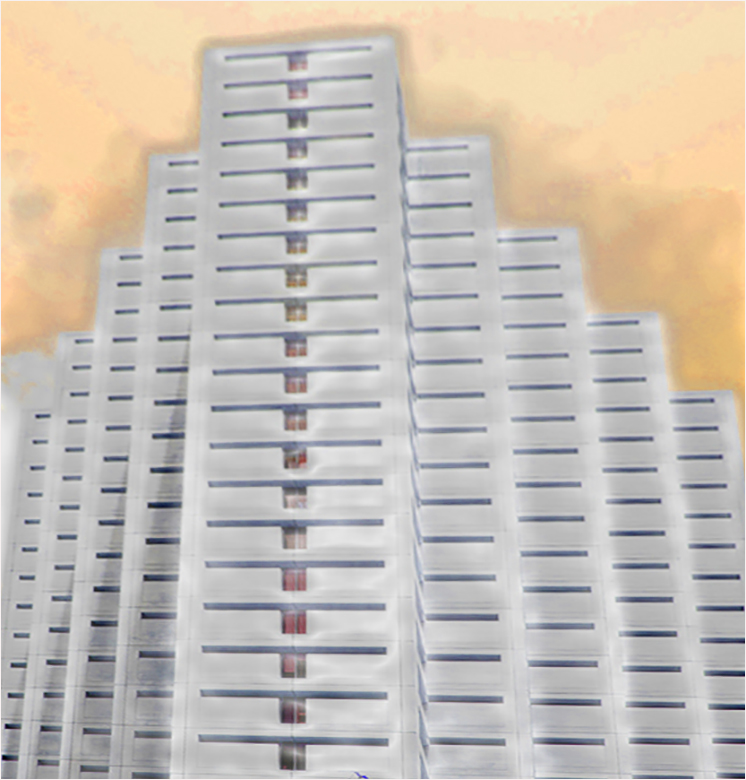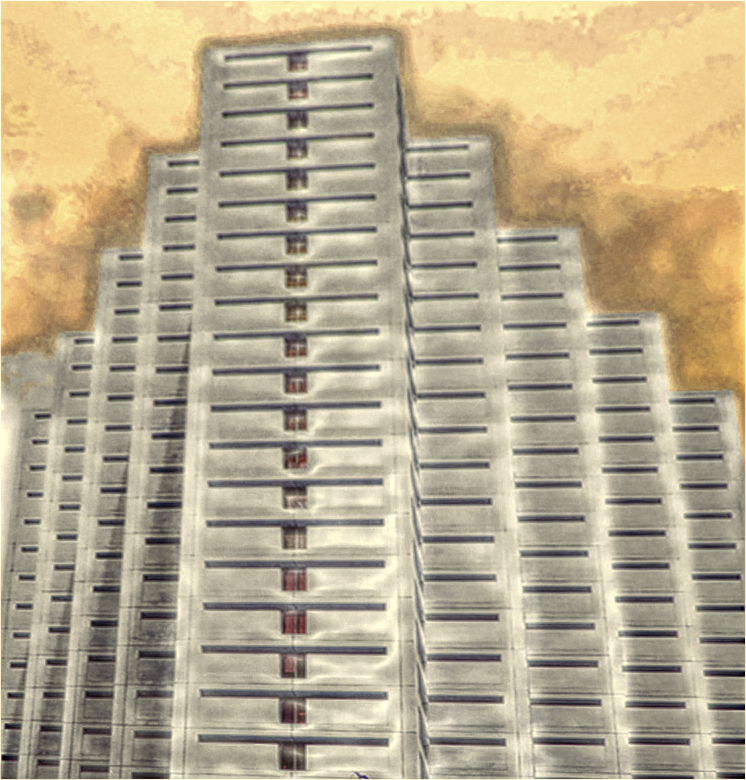 Using PS Skew Transform, adjust the building to make it more vertical, then Filter, Extreme Plaster Wrap, then alter the colour balance and you get this effect |