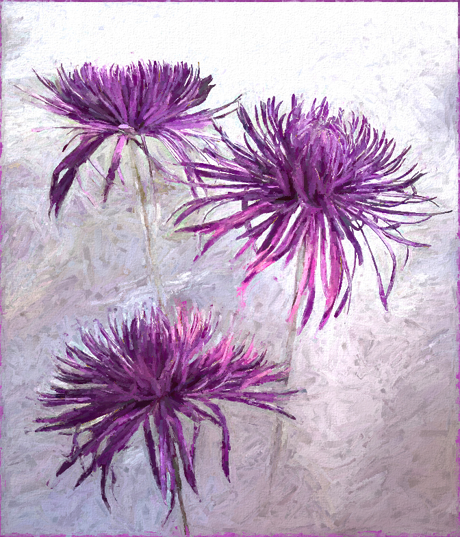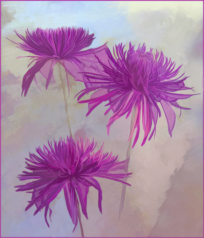 I'm not sure that you need to add a painterly effect, but playing around with Topaz Artistic looks you could try Swirly Strokes |