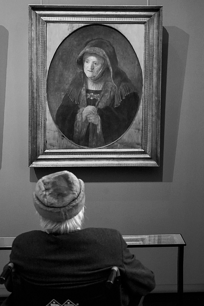 I like this shot because it appears the painted figure is looking down at the man in a wheelchair with pity. A BW version is also good. |