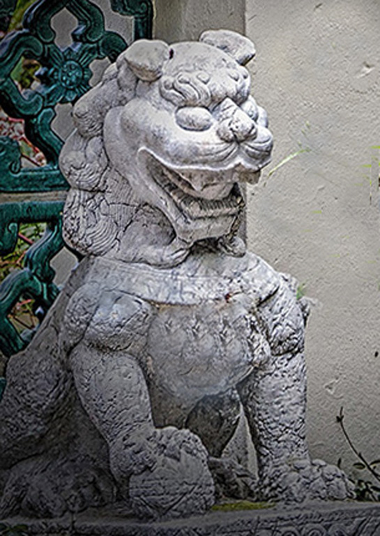 My earlier comment seems to have got lost. I like the detail of this creature, but for the dab of brownish mortar on his chest. May I suggest cloning some of the adjacent color from left side of his chest to correct this. I agree with Sherry, it needs cropping more. May I suggest cropping the top down to the top of the pictorial colors and the right side back as far as the plinth beneath him. This would centralise him more in the frame.