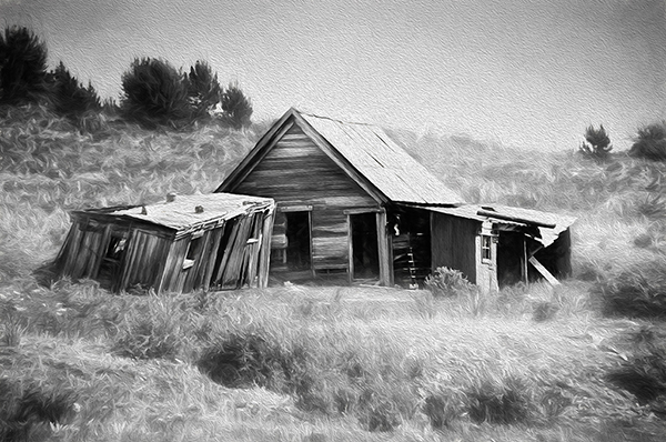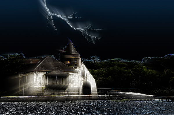 I absolutely love what you've done here, Peter! You've transformed an ordinary shot into a moody one. The foggy look that surrounds the cabin is fantastic. If it were my photo, I'd bring back some of the original look in the leaves at the top and bottom of the image to give it a more realistic yet still moody look. But wow! What a transformation you've accomplished!